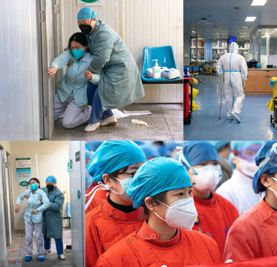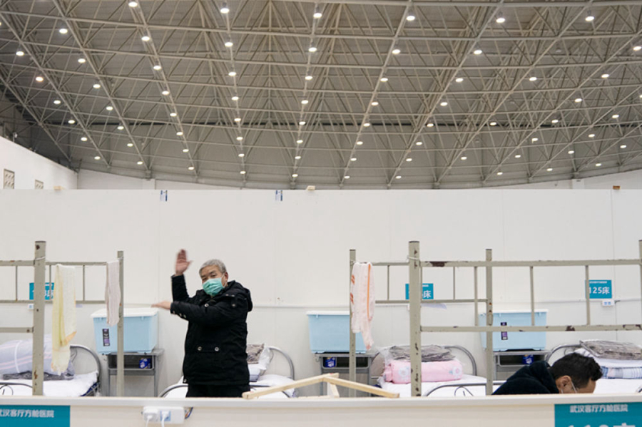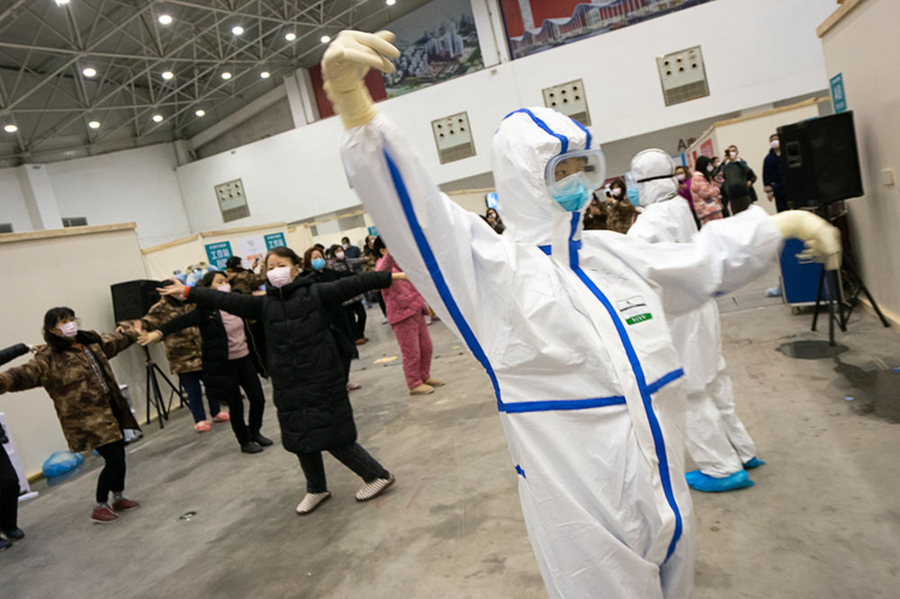 在武漢客廳方艙醫院,就算隔著厚厚霧氣的防護鏡,我依然被眼前景象深深打動:病人相互加油鼓勁,打拳的、拼魔方的、跳廣場舞的…他們有人呼吸艱難,喘著粗氣,卻也努力伸展,露出生命本來的頑強模樣。
