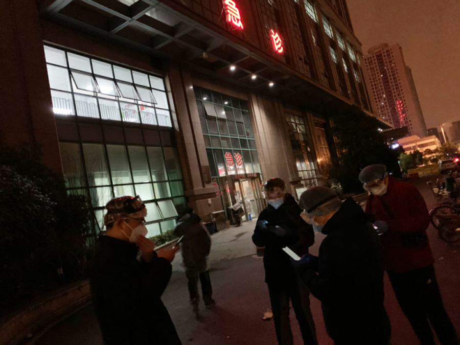此時此地,也有太多眼淚和悲痛,還來不及釋放,就只能化作續步前行的力量。2月6日晚,李文亮醫生病危,全國網友悲慟,希望出現轉機。午夜時分我趕到他所在的醫院樓下,寒風中,和一群同行站在門口,想不服輸地等一個奇跡。直到凌晨3點,沒有奇跡發生。因為走得匆忙,缺少防護用品,我放棄了貿然進入隔離區拍攝的想法。在空無一人的醫院門口,只能深鞠一躬后離去。