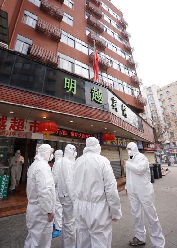 明越賓館是漢正街設置的第一個隔離點,截至2月13日累計接收隔離人員63人,其中8人因出現病情變化已轉送到醫院。