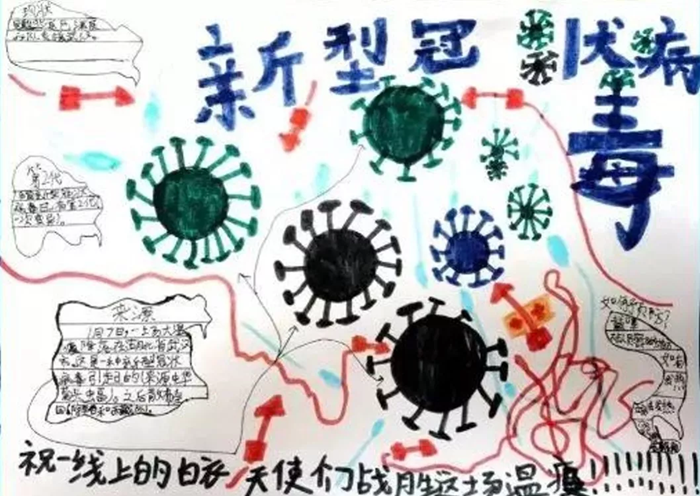 各地兒童也參與到抗疫戰(zhàn)中來,用手中的筆繪制防疫漫畫,寫抗疫詩(shī)歌、短文,錄制防疫短視頻,普及防疫知識(shí),為一線醫(yī)務(wù)工作者加油,為打贏抗疫戰(zhàn)鼓勁。