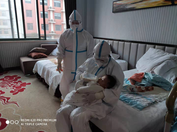 “我行”“讓我去”“讓我來”……一時間,安慶市迎江區(qū)醫(yī)衛(wèi)工作者的微信群里迎來了幾十名爭當(dāng)“臨時媽媽”的醫(yī)生護士。在隔離醫(yī)學(xué)觀察點,雖然不是救治確診病人的抗“疫”一線,但身處隔離區(qū),不排除會有被感染的風(fēng)險,可她們卻義無反顧爭先恐后地去當(dāng)這個“臨時媽媽”。后來,區(qū)里綜合考慮選定了6位“臨時媽媽”,為了方便大家休息,每三個人五個小時一個班,每天三班倒。