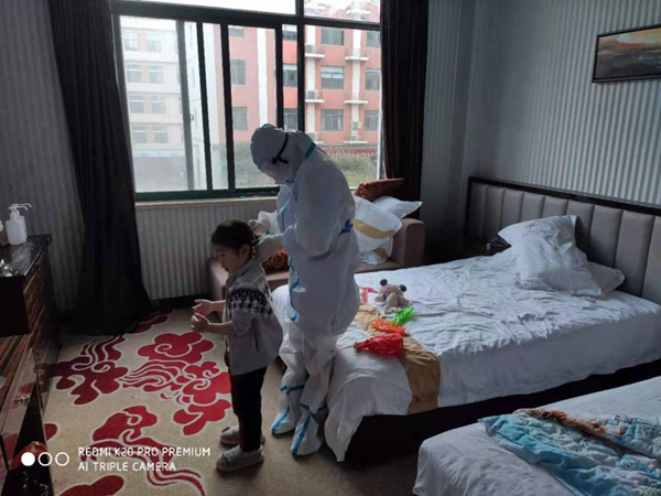 一大家子被隔離,兩個孩子不能丟在家里沒人管,這給安慶市迎江區(qū)疫情防控指揮部安置組出了道難題。“誰來照顧已是密切接觸者的兩個年幼的孩子呢?”安慶市迎江區(qū)濱江街道黨工委書記趙明來告訴記者,大家商議之后,決定把兩個小家伙送到隔離醫(yī)學(xué)觀察點,由專業(yè)的醫(yī)護人員照顧。
