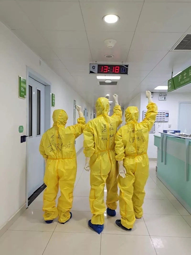 在防護服上寫下了“武漢加油”