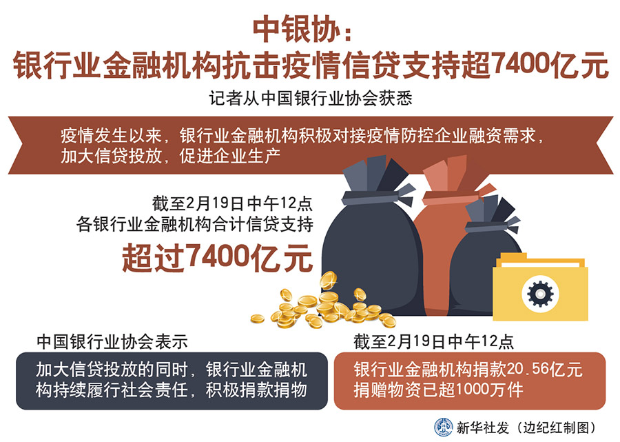 新華社北京2月20日電(記者李延霞)記者從中國銀行業(yè)協(xié)會獲悉,疫情發(fā)生以來,銀行業(yè)金融機(jī)構(gòu)積極對接疫情防控企業(yè)融資需求,加大信貸投放,促進(jìn)企業(yè)生產(chǎn)。截至2月19日中午12點,各銀行業(yè)金融機(jī)構(gòu)合計信貸支持超過7400億元。