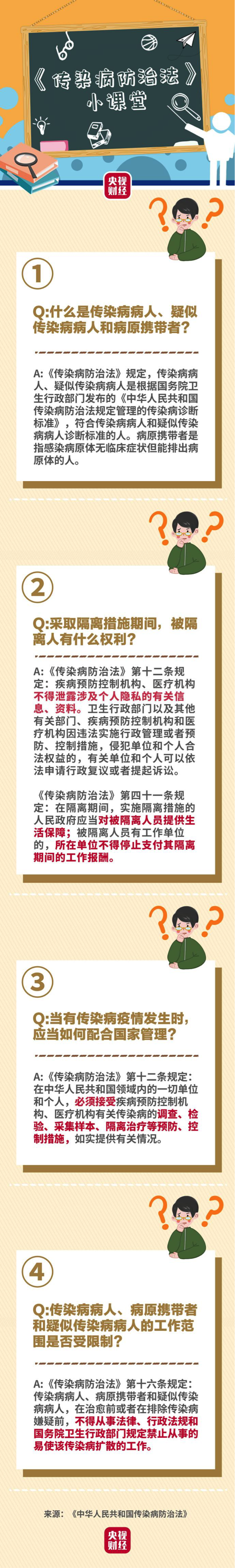 隔離期間不工作,你還能拿到工資嗎?配合疾病預(yù)防控制機(jī)構(gòu)、醫(yī)療機(jī)構(gòu)調(diào)查,你的個(gè)人信息會(huì)被泄露嗎?在治愈前或者在排除傳染病嫌疑前,你的工作范圍受限嗎?新冠肺炎疫情當(dāng)下,我們?cè)撊绾斡梅杀Wo(hù)自己?央視財(cái)經(jīng)今天推出《傳染病防治法》小課堂第二期,戳一圖↓↓