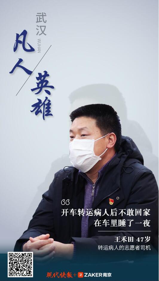 新冠肺炎疫情發生后,武漢市民用自己的行動,詮釋了“英雄城市”的含義。黃鶴樓公園職工王禾田是一名志愿者司機,每天開著由面包車改裝的“救護車”,往返于社區和醫院之間,接轉新冠肺炎患者,把他們送到方艙或是定點醫院。