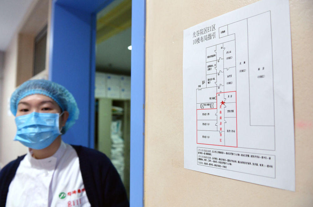 為醫(yī)務(wù)人員隨時(shí)了解情況,由青島大學(xué)附屬醫(yī)院醫(yī)療隊(duì)接管的武漢同濟(jì)醫(yī)院光谷院區(qū)工作間張貼著樓層布局指引。