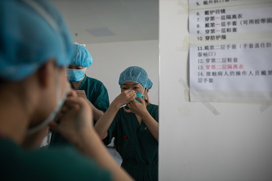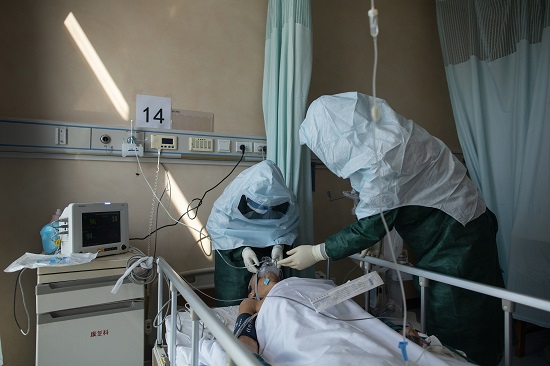 2月20日,高峰值班。他得到通知,當(dāng)天有兩例病人需要插管。經(jīng)過(guò)與主治醫(yī)師溝通,決定在上午進(jìn)行。“敢死隊(duì)”護(hù)士先在病房?jī)?nèi)準(zhǔn)備工具、藥品,然后通知高峰準(zhǔn)備。