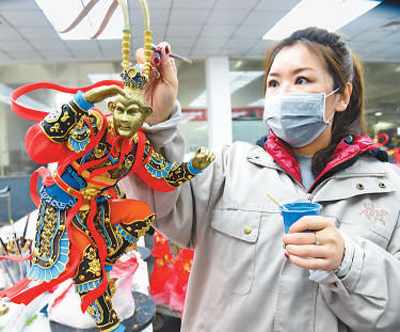 24日,浙江建德市一家文創公司的生產車間內,員工在給工藝品上色。寧文武攝(人民視覺)