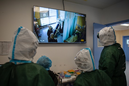2月20日,同濟醫院光谷院區,即將進ICU的“敢死隊”在穿戴防護裝備。所有人都要經過院感護士的檢查,才能進入隔離區域。