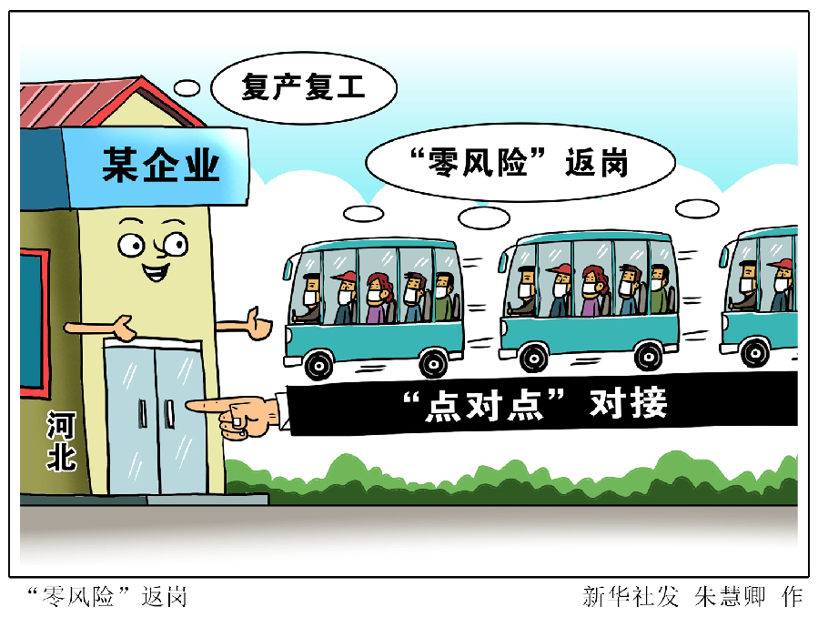 漫畫:“零風(fēng)險(xiǎn)”返崗 為確保務(wù)工人員“零風(fēng)險(xiǎn)”輸出和輸入,河北各地前移疫情防控三道防線,按照“全流程控管、全方位服務(wù)、全天候監(jiān)測(cè)”的要求,精準(zhǔn)定向?yàn)槠髽I(yè)輸送務(wù)工人員,滿足企業(yè)復(fù)工復(fù)產(chǎn)和農(nóng)民外出務(wù)工增收的雙重需求。 新華社發(fā) 朱慧卿 作