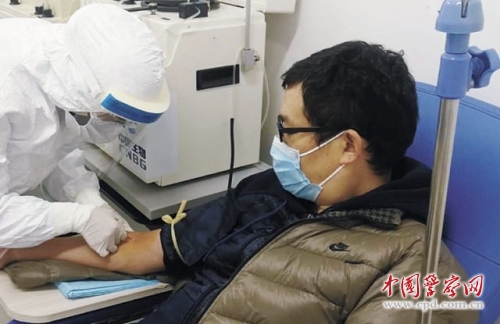 2月29日11時(shí)50分,剛剛獻(xiàn)了400毫升血液的宋曉波,走出武漢市金銀潭醫(yī)院獻(xiàn)血中心大門,成為武漢公安首位患新冠肺炎愈后捐獻(xiàn)血漿的民警。