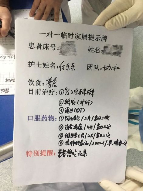 我們從人文護(hù)理的角度出發(fā),聯(lián)合武漢協(xié)和醫(yī)院成立了一支以關(guān)愛(ài)患者心理和生活的“臨時(shí)家屬”護(hù)理隊(duì)伍。三十多名名護(hù)士踴躍報(bào)名,加入到了這個(gè)有愛(ài)的隊(duì)伍中。為確保人文護(hù)理項(xiàng)目達(dá)到預(yù)期效果,病區(qū)制定了《“臨時(shí)家屬”管理規(guī)范》《人文關(guān)懷方案》。