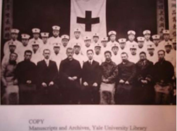 參加京漢鐵路鼠疫防治的同仁合影,前排左起第五為顏福慶(原件藏耶魯大學(xué)圖書(shū)館)