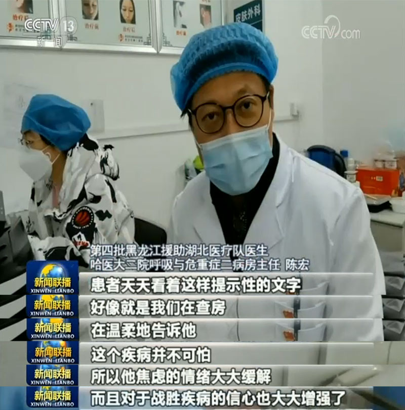“繼續努力,早日出院”“新冠必敗,您必勝”“堅持就是勝利”,在武漢市第一醫院16樓重癥病區,幾乎每位患者床頭都貼有一張寫著鼓勵話語的淡粉色紙卡,而這些都出自前來支援的哈爾濱醫科大學附屬第二醫院呼吸科陳宏醫生之手。