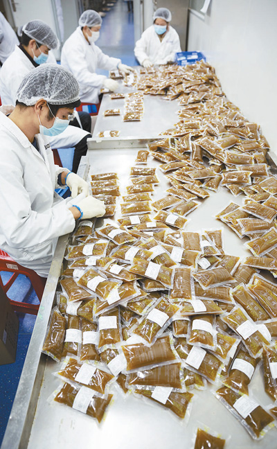 3月2日,湖北武漢一家中藥公司,工人正在為灌裝好的中藥貼上標簽。據悉,該公司在疫情期間,按照國家衛生健康委辦公廳和國家中醫藥管理局辦公室聯合印發的《新型冠狀病毒肺炎診療方案(試行第六版)》中推薦的藥方,為武漢市7家醫院、10個方艙醫院等單位生產、煎煮和配送中藥湯劑。記者 張武軍攝