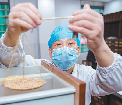 3月2日,福建省泉州市德化縣醫院的中藥師在根據處方調配中藥。邵玉姿 許華森攝影報道