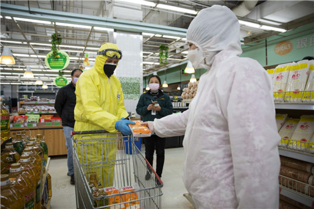 送去消毒水、橡膠手套、防護(hù)服、飯菜