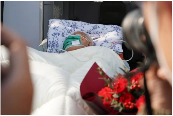 雖然老人新冠肺炎已經治愈,但他同時還患有阿爾茲海默癥等多種疾病,失去了自主意識和行動能力,所以需要靠醫用平車和車輛進行轉運。