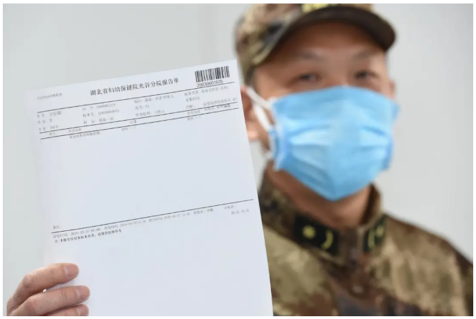 醫務人員向記者展示老人的新冠病毒核酸檢測陰性報告單 攝影:趙佳慶
