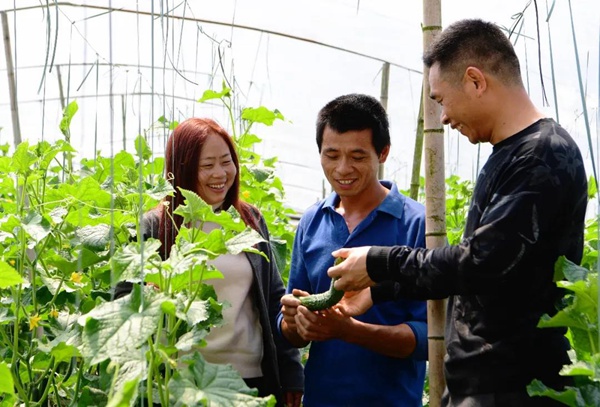 福建省建甌市小橋鎮的鄉鎮干部下鄉為農戶講解大棚黃瓜的種植與管理技術 魏培全 攝