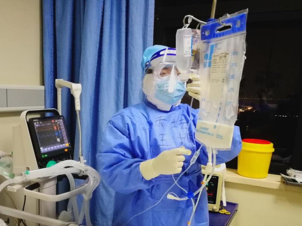 沒有時間坐下來,緊接著需要檢查各個儀器運(yùn)轉(zhuǎn)是否正常、管路連接是否完好,最后幫患者擦拭了身體,保持患者皮膚清潔干燥是我們護(hù)理的要求。自己又是一身汗,我覺得防護(hù)服里面的衣服已經(jīng)貼在了身上。