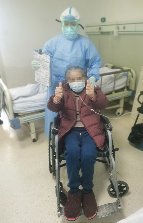 在該院感染六病區的醫護人員日復一日精心照料下,秦奶奶的身心狀況日漸好轉,即將出院。