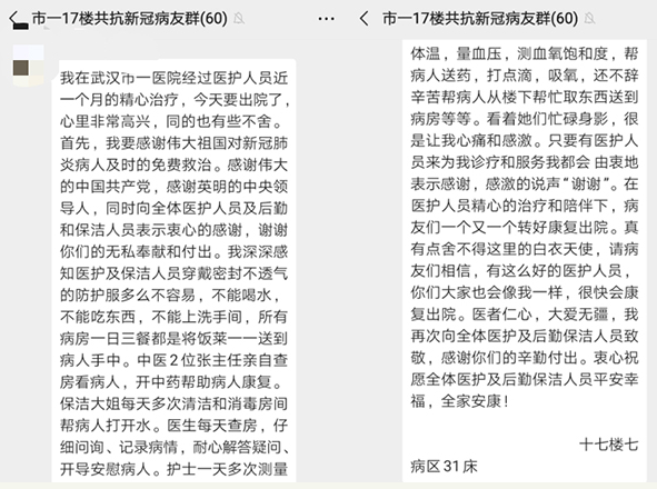 后來看資料時,我才知道她已經49歲了。我們原來的科室還有一個二胎媽媽,她給我發信息說,“護士長我準備好了,可以隨時上班”。她的小孩才5個多月,我當然不會安排她來工作,可是她的這份心意讓我感受到了莫大的支持。