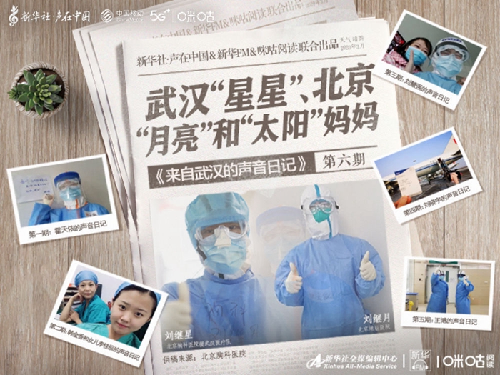點擊收聽來自武漢的聲音日記第六期。今天講述這樣的一家人。哥哥叫劉繼星,是北京胸科醫院援武漢醫療隊成員,妹妹叫劉繼月,奮戰在北京地壇醫院ICU病房。而他們的媽媽也曾是醫務人員,退休前就職于北京地壇醫院順義院區,參加過抗擊非典疫情。一起來聽他們的故事。