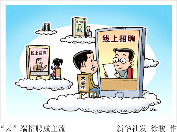 “線上招聘很大程度上節約了時間和經濟成本,而且在家里視頻面試也沒有去現場那么緊張?!本妥x于山東大學新聞學專業的碩士畢業生王佳佳說,以前找工作需在北京、上海、濟南等多個城市之間往返,現在在家就能完成。