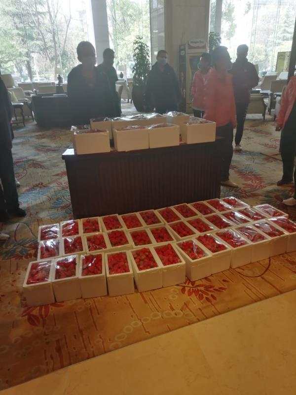 據(jù)前來送草莓的康復(fù)患者稱,這些草莓是江岸方艙醫(yī)院64名病友花費了1.6萬元購買送給河北的醫(yī)護(hù)人員。為了保證草莓的新鮮,武漢當(dāng)?shù)剞r(nóng)民從凌晨3點就開始采摘。“這是我們的一點心意,如果不是你們的幫助,單靠武漢的醫(yī)務(wù)人員確實是挺不住的,很感謝你們從全國各地來幫助我們,這次疫情來的很突然,我的母親也因病毒感染去世。小家的母親走了,但是你們卻拯救了武漢這個大家。非常感謝你們。希望大家把這點心意和問候帶回河北,同時也希望大家一路平安,感謝你們對我們武漢的很大幫助。謝謝大家!”