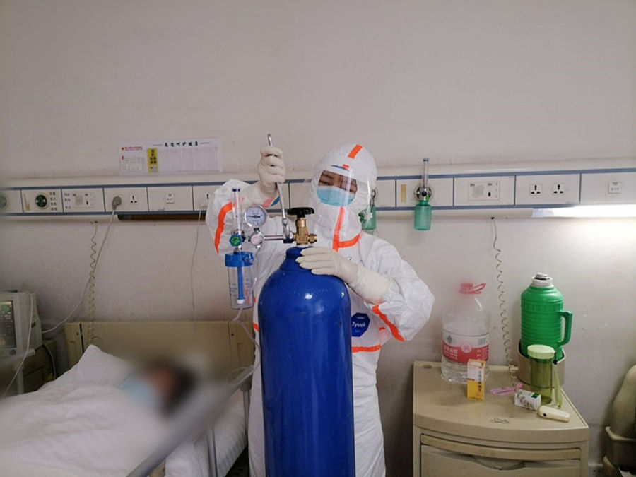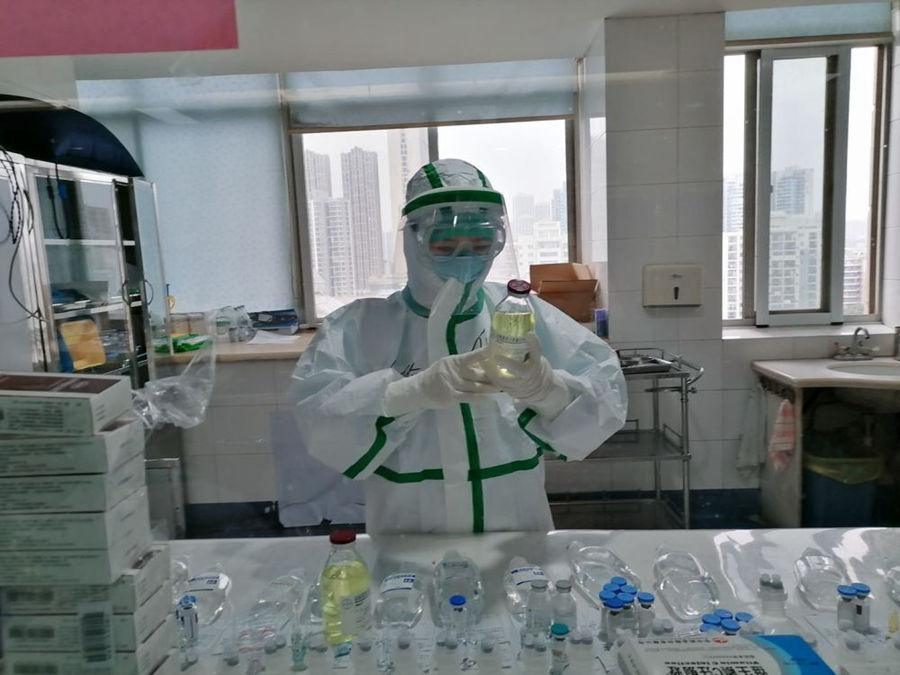 圖為四川大學華西醫院援湖北醫療隊醫務人員銀鈴在工作中。