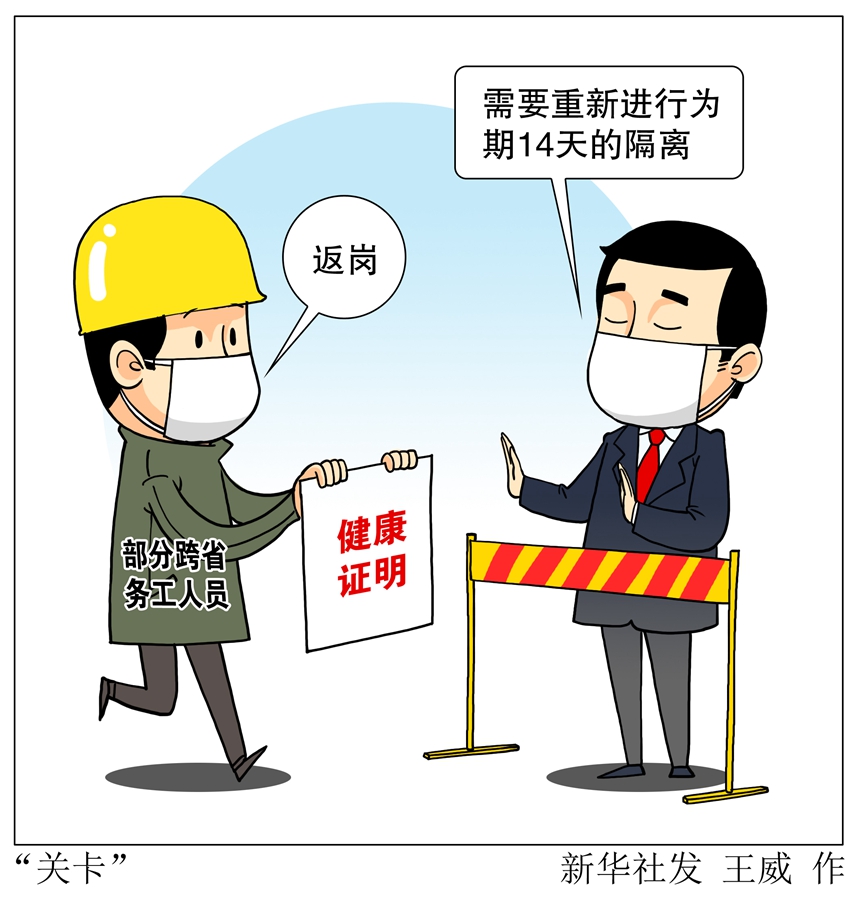 目前,一些地方正在推動“點對點、一站式”輸送返崗,為務工人員的流動提供了及時幫助,但在一些地方,也存在務工人員的流動面臨需要提交的材料繁多、手續繁雜、申報困難等問題。部分來自低風險區、擁有“健康碼”,且進行了長時間居家隔離的務工人員,受限于“健康碼”跨區域互認中存在的壁壘,返崗時還要一切“從頭再來”,一定程度上也增加了務工成本。尤其是,有的地方還要求外來務工人員隔離期食宿費用自理,這讓本已長時間沒有經濟收入來源的務工者更加難以承受。