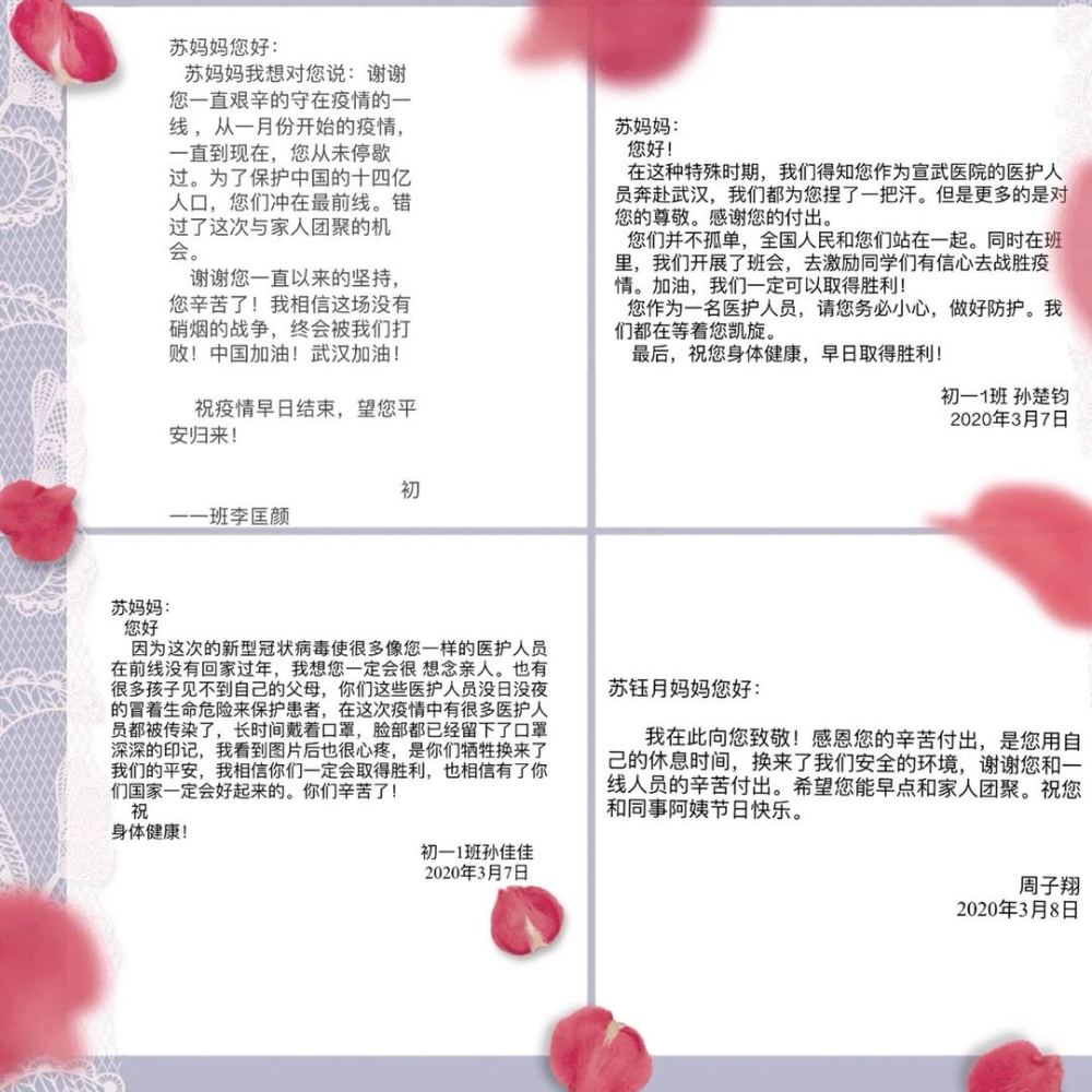 今天,我收到了來自女兒和她所在的北京市第十五中學(xué)初一(1)班同學(xué)們的38封慰問信。孩子們質(zhì)樸的話語和真摯的問候,真是讓我意外又驚喜,感動又感激,謝謝大家的祝福與鼓勵!