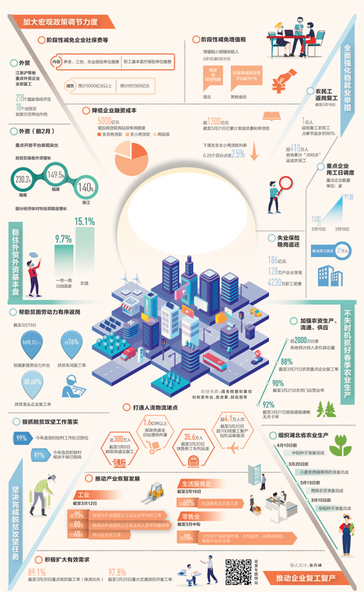 一個月以來,各地各部門分區分級精準復工復產,圍繞中小微企業、農民工、高校畢業生、外商等出臺針對性措施,加大支持力度。本版推出數據可視化融媒體報道,展現生產生活秩序加快恢復的態勢和積極成效。