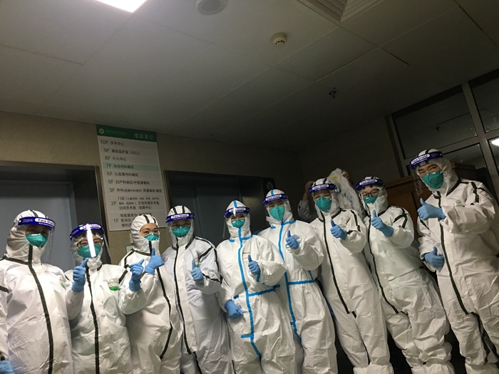 武漢大學(xué)中南醫(yī)院對口支援武漢市第七醫(yī)院團隊部分人員合影。(資料圖片)