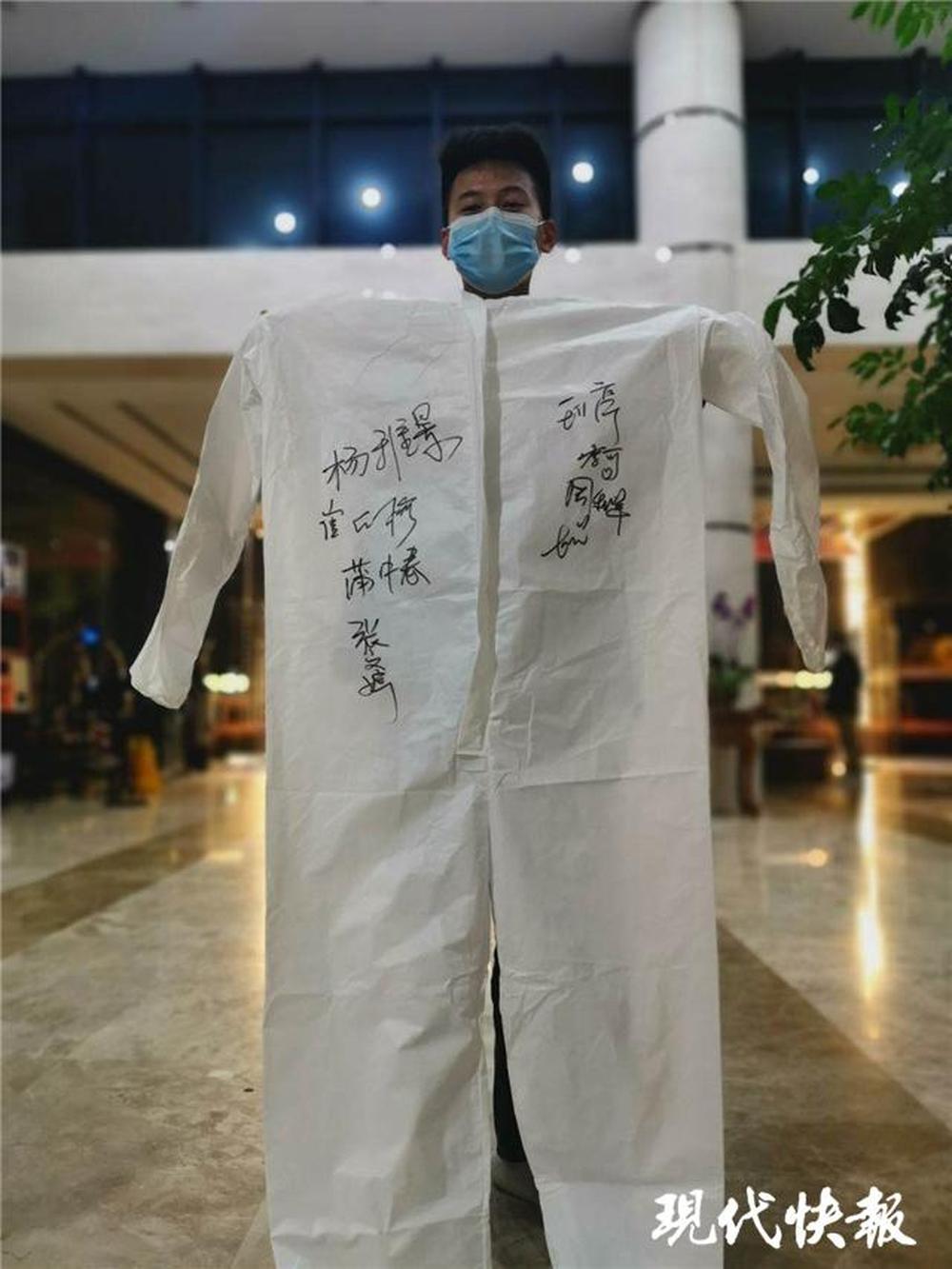 “其實他們都比我大,叫我強哥都不敢應。”陳強靦腆地笑著。陳強還展示了一件特殊的防護服,上面寫滿了他接送的醫護人員名字。“我希望即使他們走了,我也能記得他們。”