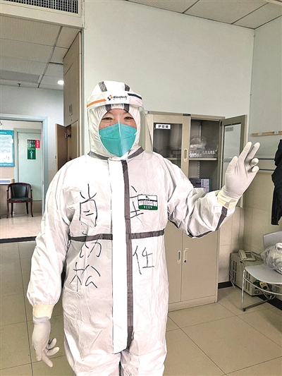 肖勁松準(zhǔn)備進(jìn)入隔離病房疏導(dǎo)病人 受訪者供圖