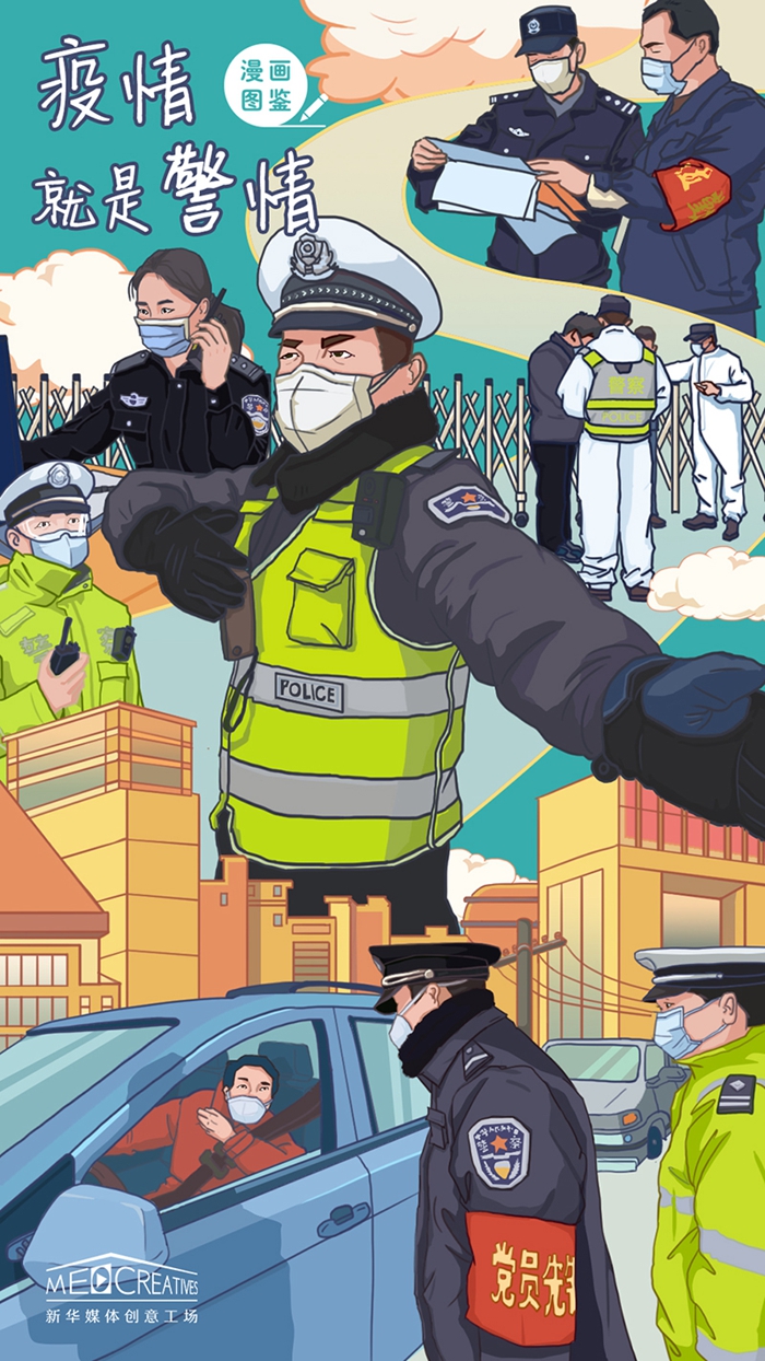 在主戰場湖北,廣大人民警察活躍在4500個社區、2.5萬個行政村,與抗擊疫情各部門工作人員一道筑牢抵御疫情的“防火墻”。接患者就醫,送患者回家,幫患者買藥取藥……疫情防控阻擊戰的第一線,廣大公安民警拼搏奉獻,彰顯人民公安的為民本色。