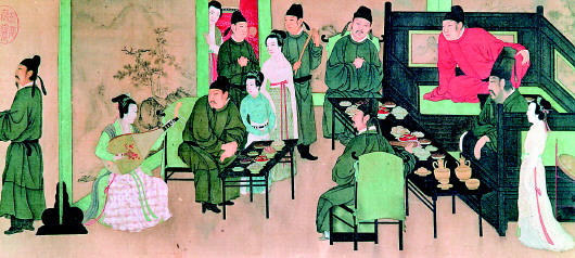 宋代,合餐進一步定型,這與市民經(jīng)濟的發(fā)達不無關(guān)系。兩宋的都城,飲食行當(dāng)極其豐富,菜品繁密、品相細膩。各品類的酒樓、食肆也是不可勝數(shù),常常是食客滿盈。