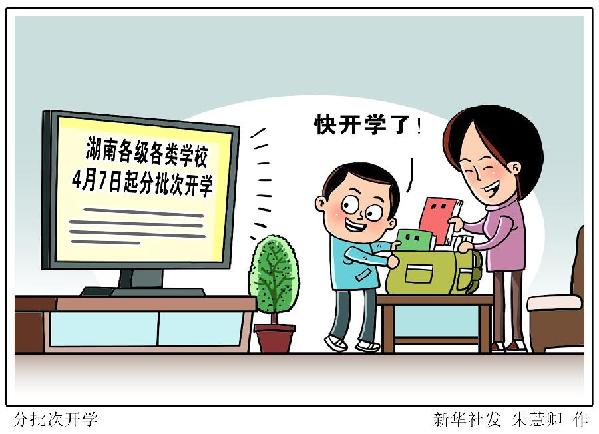 新華社長沙3月28日電(記者袁汝婷)湖南省教育廳27日晚通報,經湖南省委、省政府同意,全省高三年級、初三年級于4月7日開學。之后,湖南各市州根據本地疫情情況,按照中學其他年級、小學、幼兒園的順序,明確轄區各縣市區中小學其他年級和幼兒園錯時錯峰開學時間。高校在其所在城市的中小學基本開學后開學。