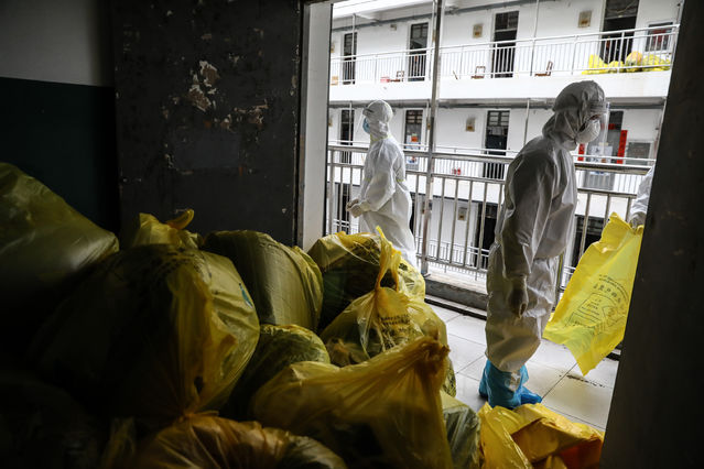 3月27日,武漢軟件工程職業學院康復驛站,工作人員正在清理隔離觀察者房間留下的物品,之后宿舍將進行全面消殺。武軟康復驛站在2月25日投入使用,共分批接納854名康復隔離人員。新冠肺炎治愈出院患者在此實施為期14天免費的康復隔離和醫學觀察,達到醫學標準后,才能解除隔離返家。中青報·中青網記者 趙迪/攝