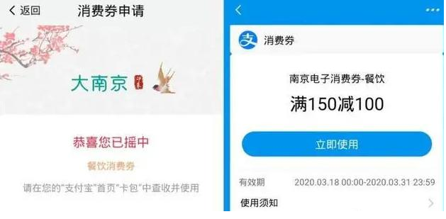 3月13日,江蘇南京推出了3.18億元消費券,包括餐飲、體育、圖書、信息等七大類,面值根據不同類型按每份100元或50元設定。