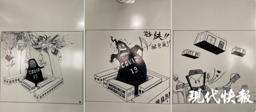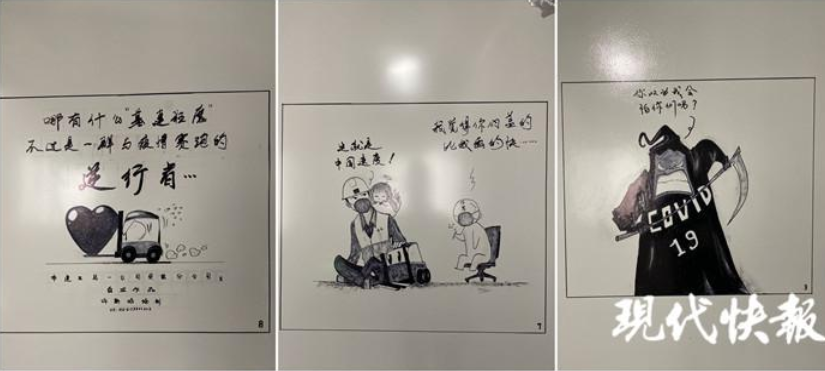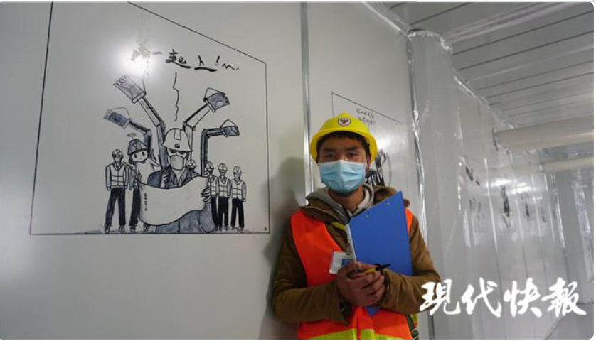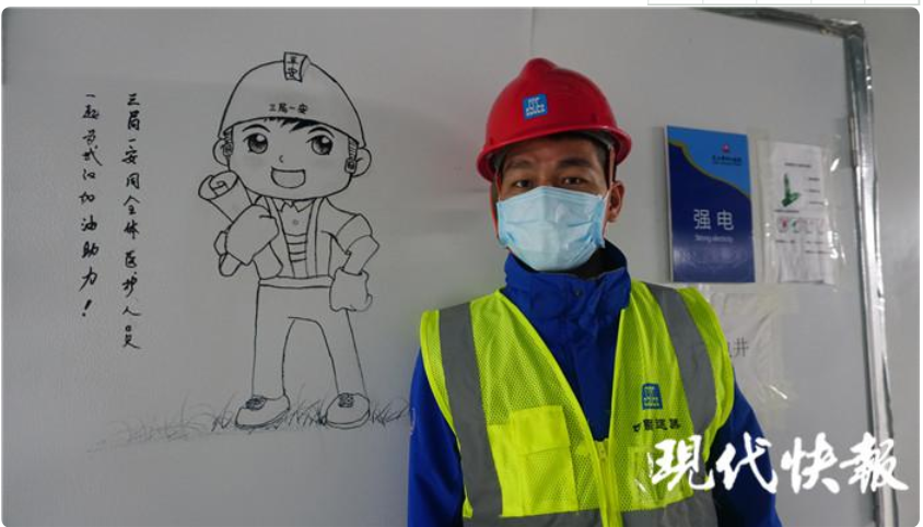 許新焰看到醫(yī)護人員通道的一面墻空著,就用一組漫畫,把中建三局建設(shè)醫(yī)院對抗 " 疫魔 " 的過程,用9幅漫畫體現(xiàn)出來。" 就是想給醫(yī)護人員、志愿者和我們這些維保隊員力量,我們用幾天時間就把醫(yī)院建起來了,這樣的速度,不怕疫魔。" 他說,每幅漫畫大約需要耗費一兩個小時,有時畫著畫著就要出工,前前后后花了七八天的時間,才把整組漫畫全部畫完。