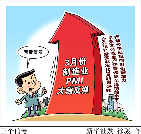 新華社北京3月31日電 題:3月份制造業PMI大幅反彈背后的三個信號