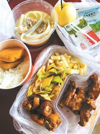 隔離期間,志愿者們?cè)谂笥讶Ψ窒碜疃嗟木褪遣惋嬚掌蠹移毡楸硎尽盎锸澈谩⒊圆煌辍薄H投紲?zhǔn)時(shí)由工作人員送到房間門口的小柜子上,葷素搭配,每天不重樣,光主食就包括米、面、粗糧好幾種。熱干面、酒釀湯圓、小龍蝦等武漢地道美食總是深受志愿者們的喜愛。任超打趣地說,每天早晨就是被工作人員清脆的一聲 “再不吃早飯就涼了啊”叫醒的。