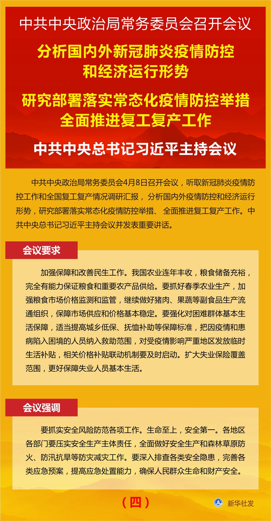 圖表:中共中央政治局常務委員會召開會議 分析國內外新冠肺炎疫情防控和經濟運行形勢 研究部署落實常態化疫情防控舉措全面推進復工復產工作 中共中央總書記習近平主持會議(四) 新華社發