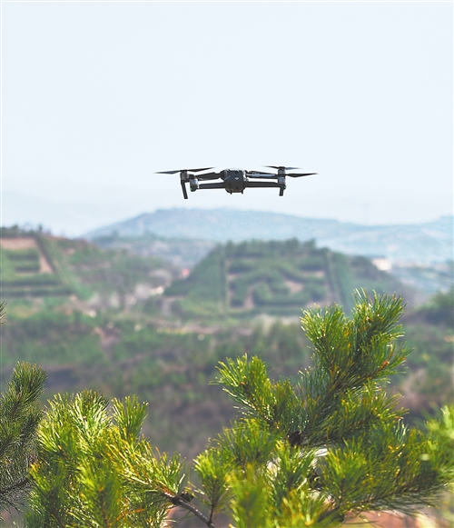 無人機在山西太原杏花嶺區(qū)牛駝生態(tài)林區(qū)護林防火巡查。 新華社發(fā)