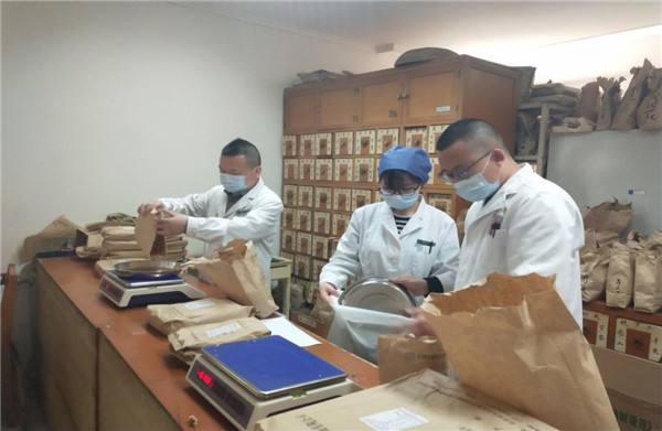 中藥房藥師在調劑預防中藥(央廣網發 北京小湯山定點醫院供圖)