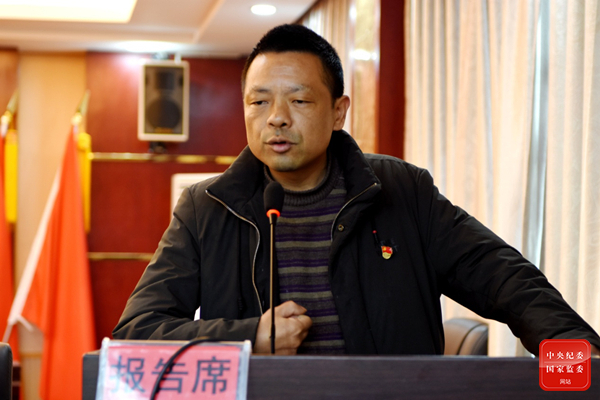 2019年1月,向衛(wèi)煌(前排左一)在雙峰縣井字鎮(zhèn)黨員冬訓大會上重溫入黨誓詞。